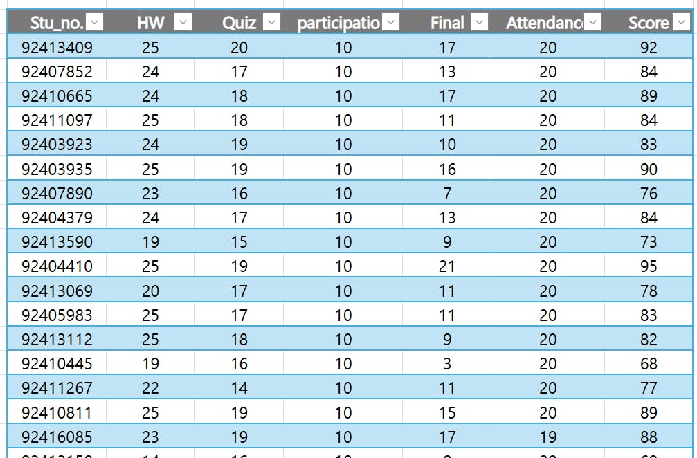 우선 학교 LMS 사이트에서 내려받은 학생들의 성적 데이터를 가지고 테스트를 해봤습니다.