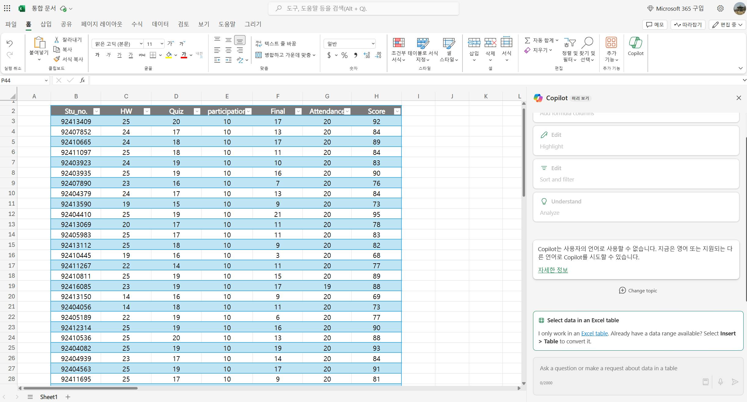 때마침 성적 처리 기간과 맞물려 코파일럿 프로가 적용된 엑셀을 이것저것 사용해보면서 느낀 점을 한 번 공유해 보겠습니다.