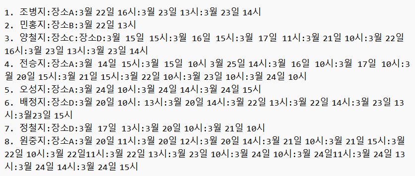 이번에는 진짜인가? 팩트 체크를 해봤습니다. 그룹1은 팩트가 맞습니다. 하지만 제가 데이터를 또 잘못 입력했네요 ㅠㅠ.. 의미 없음. 하지만, 그룹2는 오답... 그룹3는 13시는 오답, 14시는 정답 그룹4는 장소가 다름...