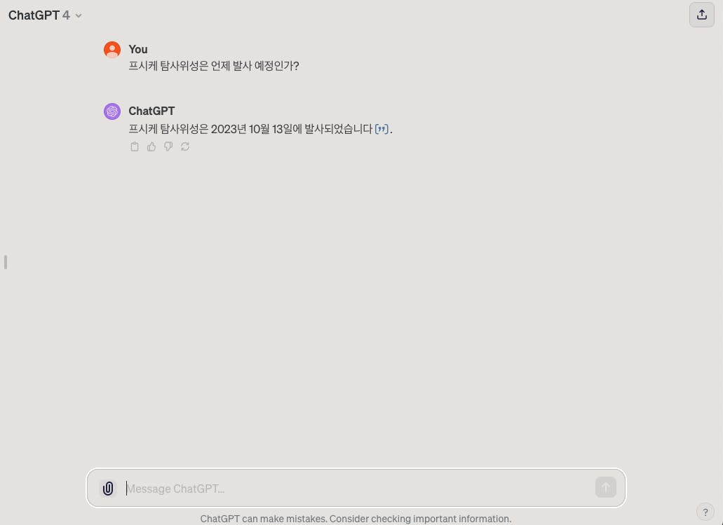 이제 빙이나 플러그인 없이도 최신 정보를 조회해 주는군요.