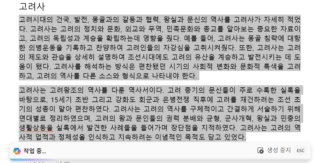 👏 답변의 수준이 chatGPT나 클로드보다 못한 부분들이 있기는 하지만 작성된 내용의 중간중간 필요한 부분만 다시 수정할 수 있다는 점은 너무 좋다. 😀