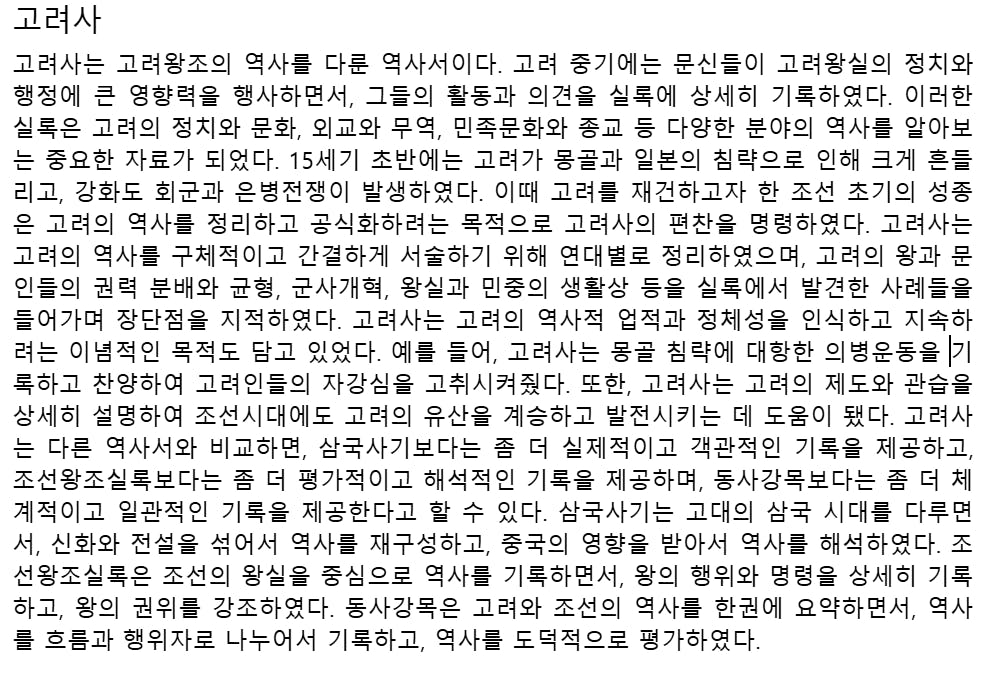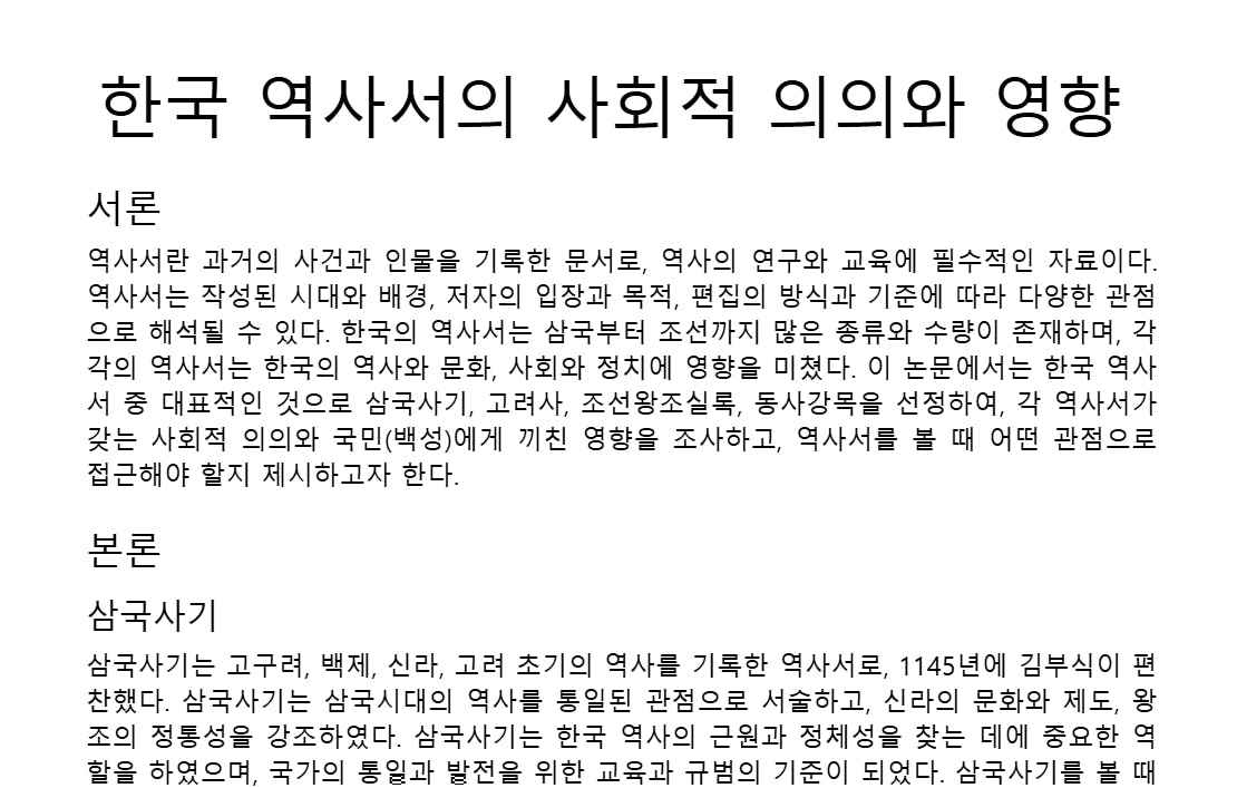 • 지금부터 너는 한국의 고등학교 1학년 학생이야. 한국사 과제를 수행해야해.