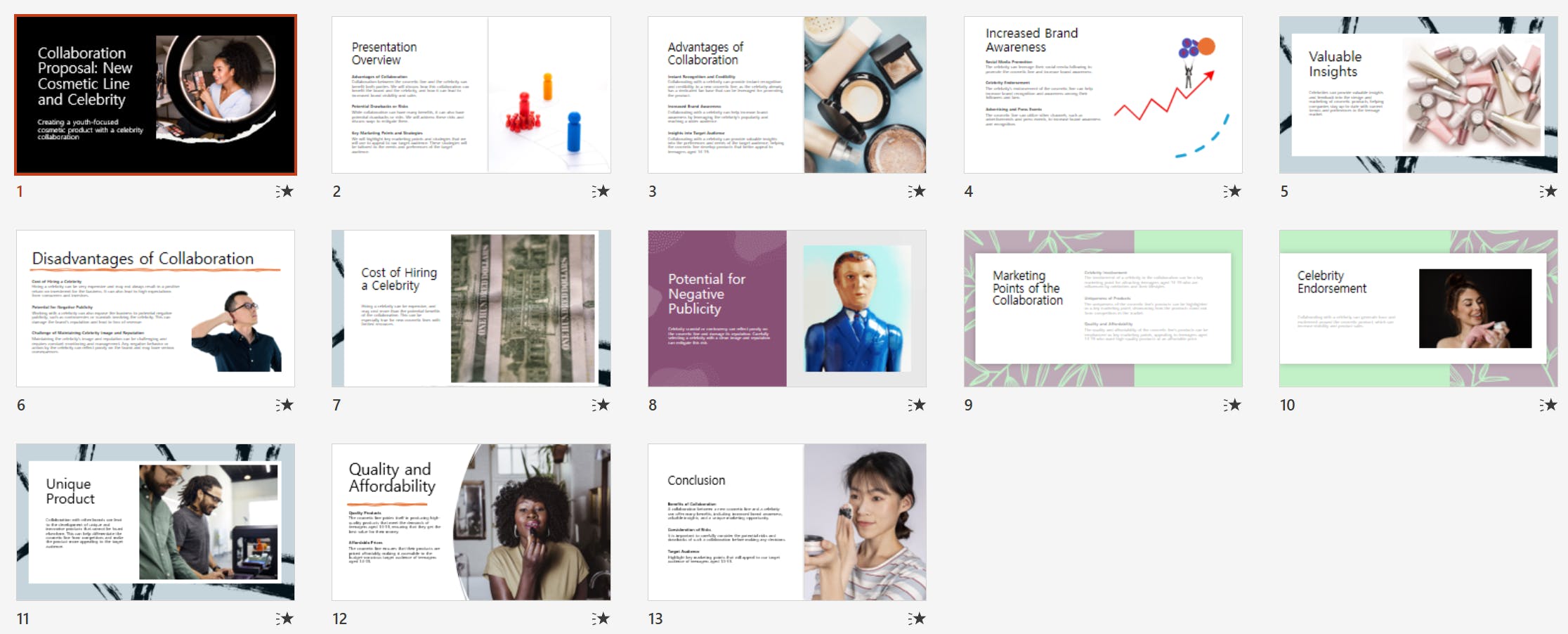 • 너는 화장품 마케팅 담당자야. 이번에 새로 출시한 화장품 라인을 연예인과 콜라보하여 출시하려고 해. 주 타겟층은 14~19세 청소년이야. 이 타겟층의 청소년들이 현재 좋아하는 연예인을 조사하여 콜라보레이션 하기에 가장 적합한 연예인을 찾아줘. 콜라보레이션을 했을 때 장점, 단점, 마케팅 포인트 등이 담겨 있는 사업제안 프레젠테이션을 만들어줘. 콜라보레이션의 LG전자와 뉴진스의 콜라보레이션 제품인 뉴진스그램을 참고해줘
