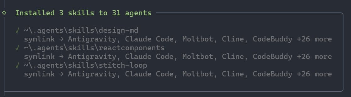 구글 공식 스티치 스킬 레포지토리에 using the add-skill CLI 라고 쓰여있었습니다.