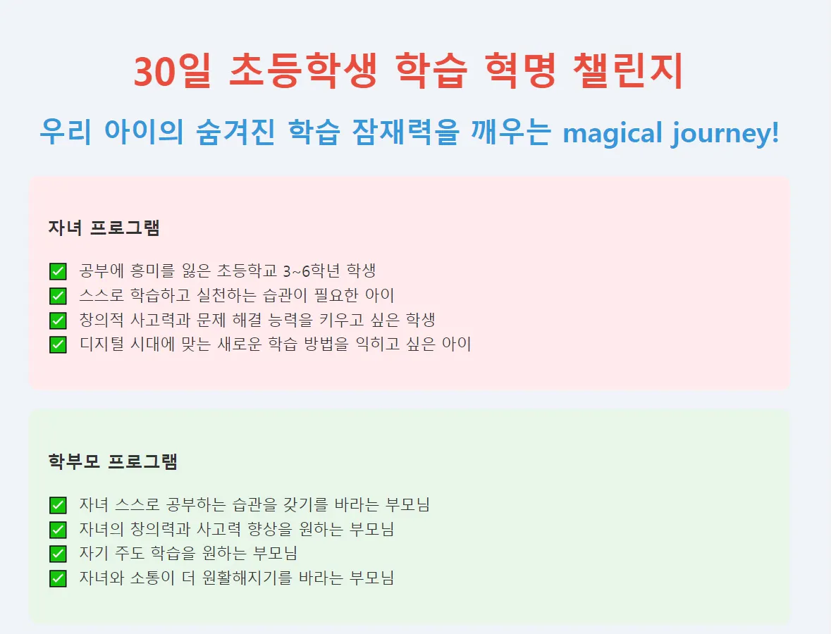 '30일 초등학생 학습 혁명 챌린지' 랜딩페이지 2탄