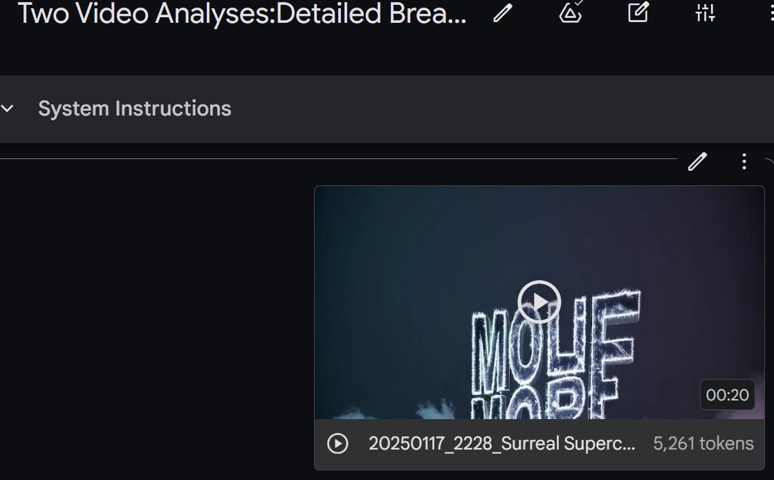 우선 Google AI Studio를 사용해 영상 파일을 업로드했습니다. “분석해 줘” 정도의 간단한 지시만 해도, AI가 장면별로 카메라 움직임·텍스트·배경 변화를 세세히 짚어주더군요.