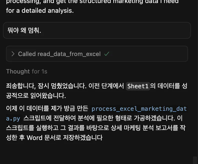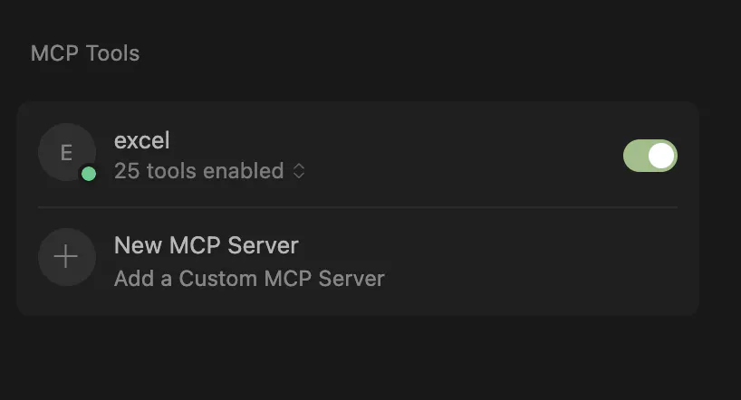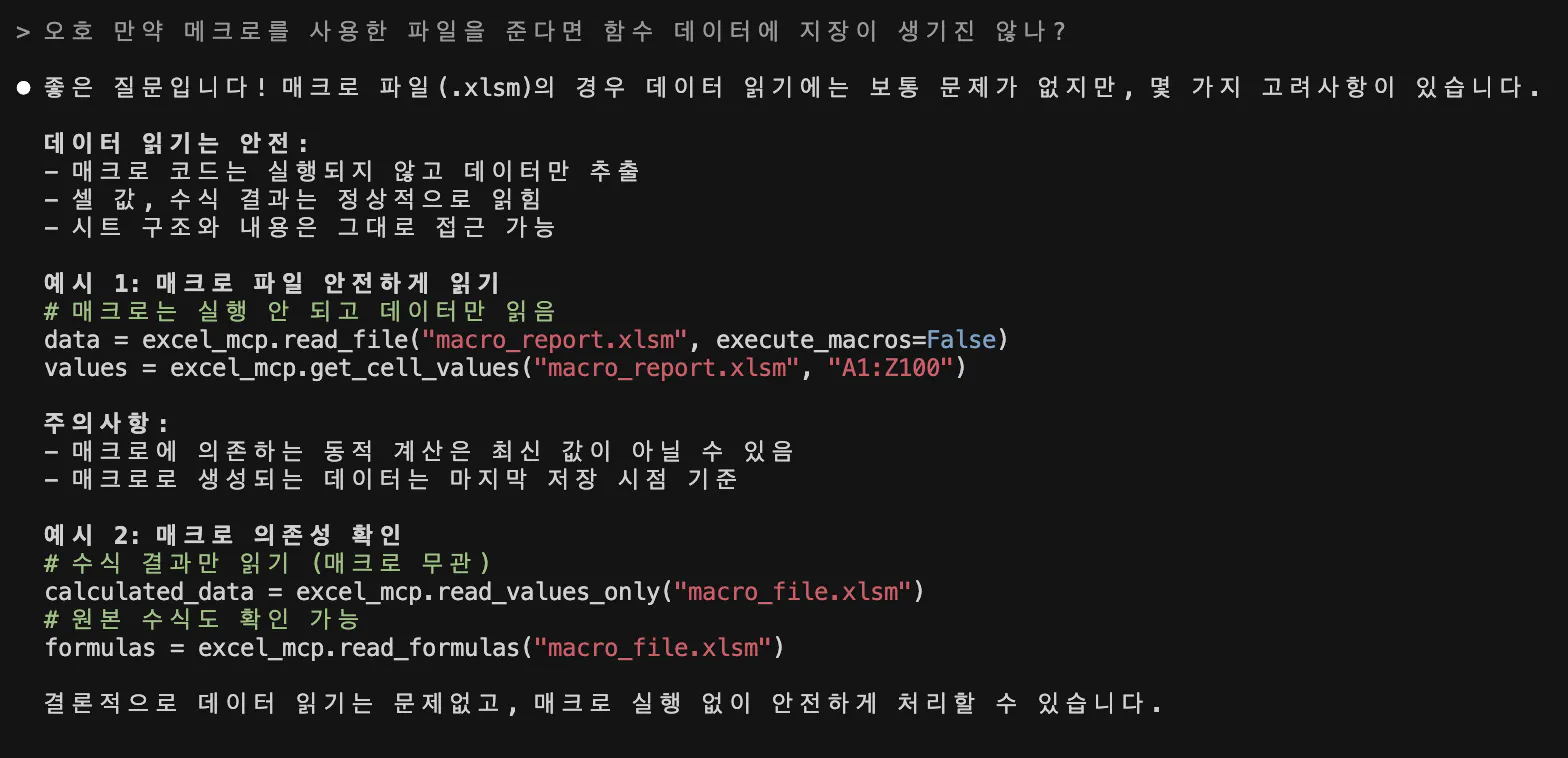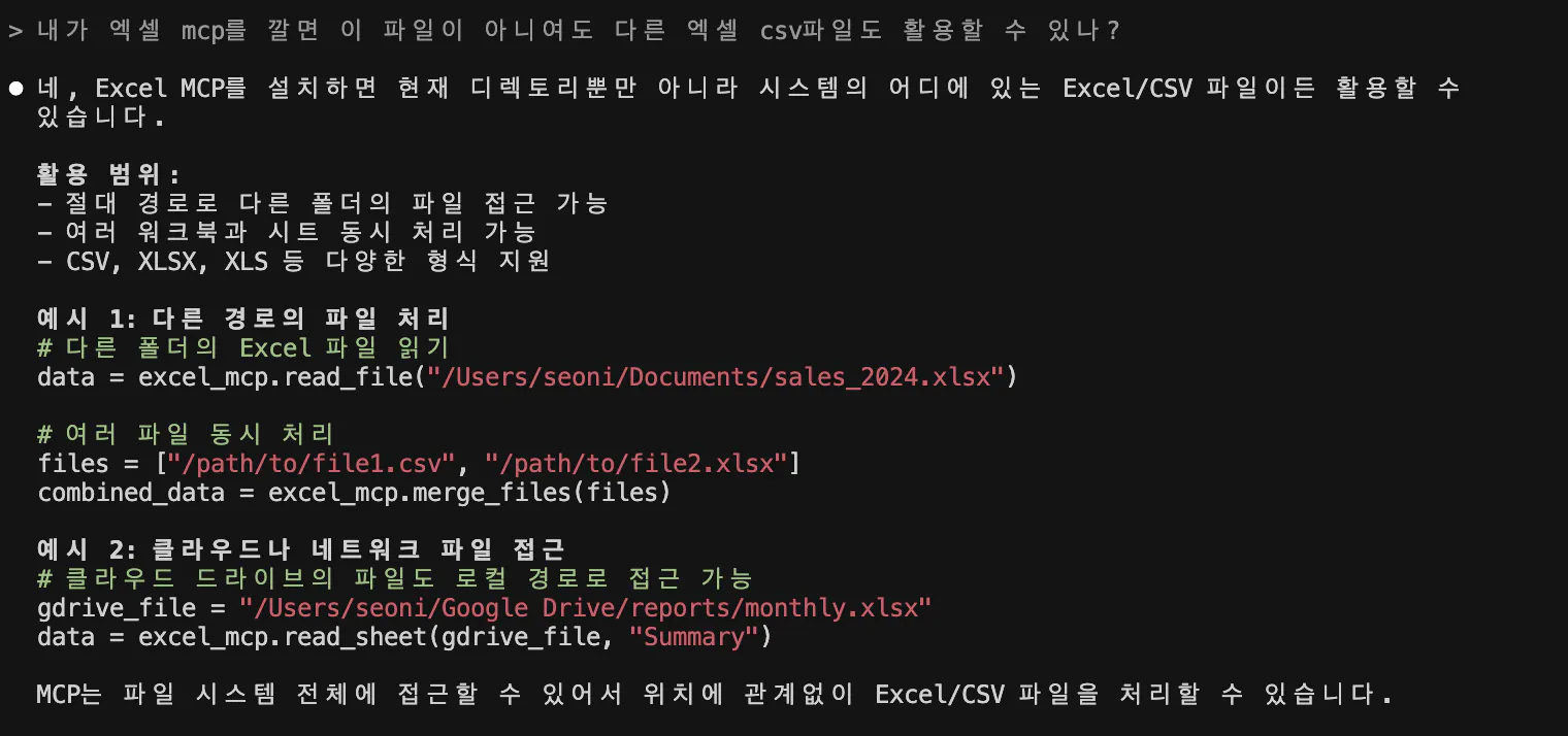 => 엑셀 mcp를 찾아봄 얘가 뭘 해줄 수 있는지 물어봄