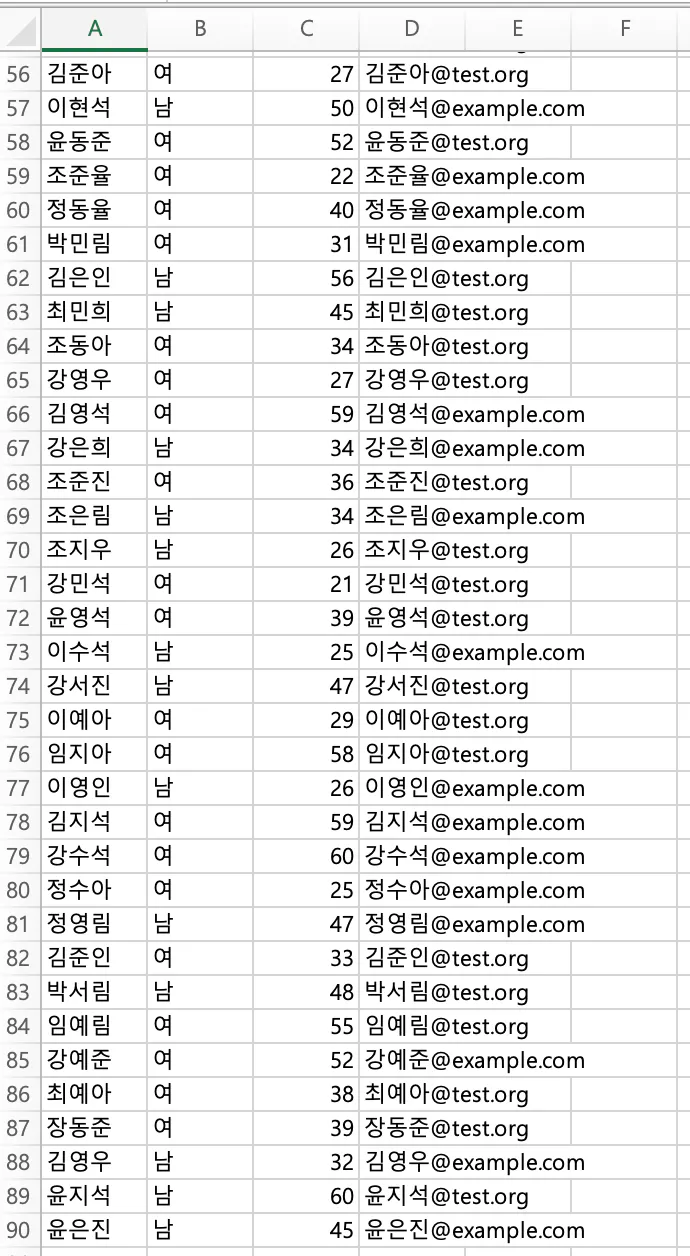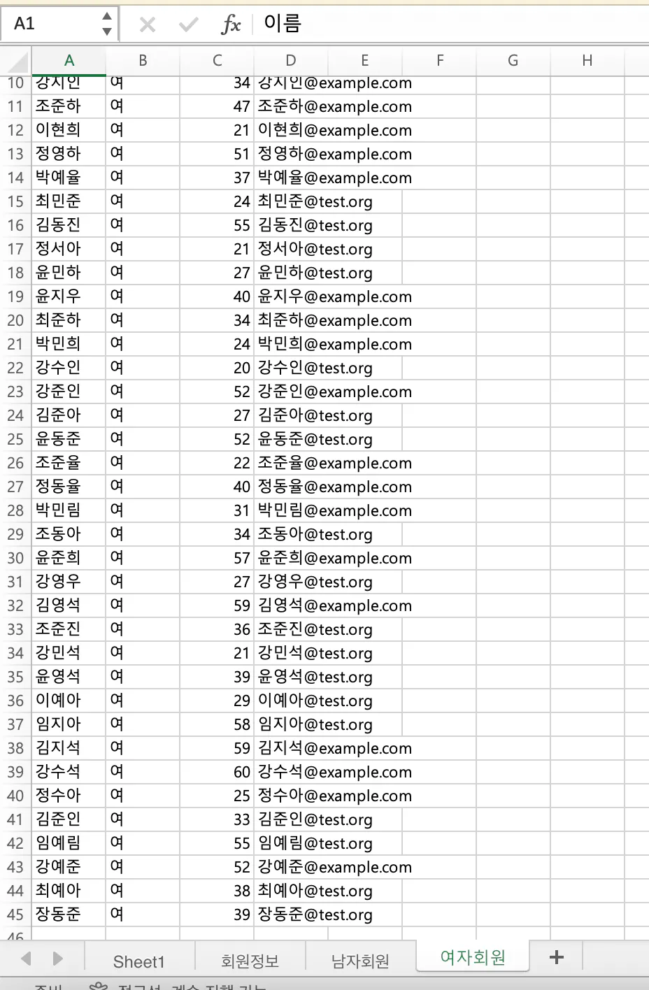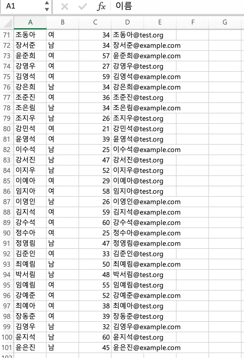 프롬프트 :파일을 확인해보니 100명이 안되던데? 제목 줄을 제외하면 89명 밖에 안 만들어졌어. 나머지 11명도 임의의 한글 이름을 가진 회원 정보 .txt파일을 만들어주고 "회원정보" 엑셀 파일에 추가해줘(계산을 잘 못하길래 친절히 11개로 제시해줌)