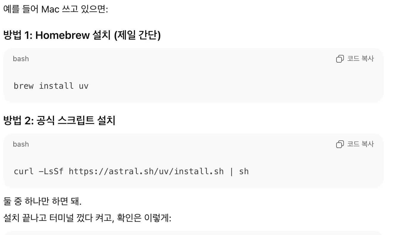 참고해서 깔려고 했는데 무슨 uvx를 깔라고 뜸