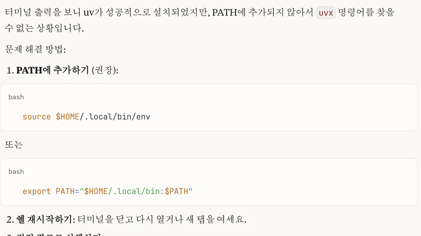 1. uvx 경로 확인:which uvx