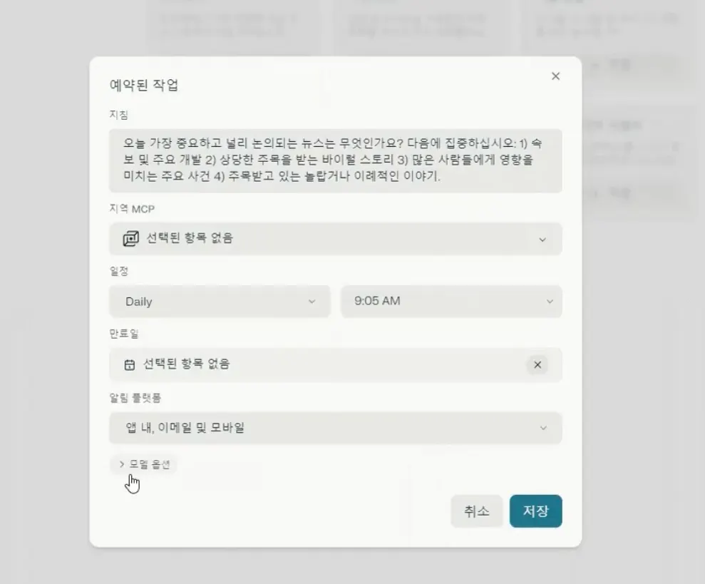 Tasks 기능을 활용하면 ‘주기적으로 나를 대신해 찾아보고 정리해주는 도구’로 바뀝니다.