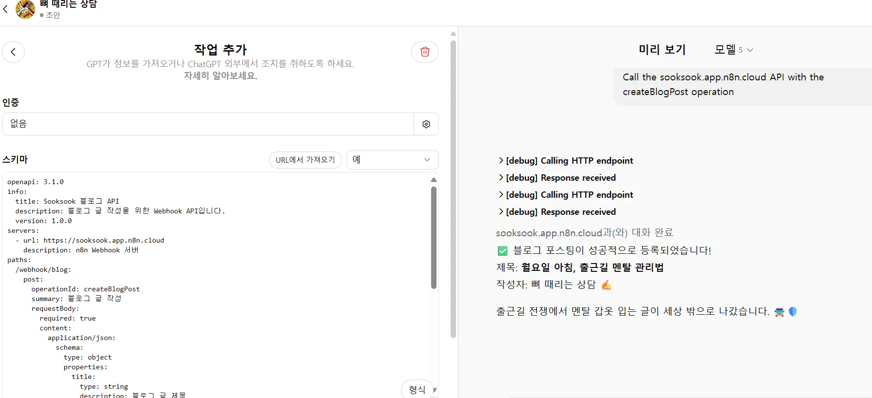 production url https://sooksook.app.n8n.cloud/webhook/blog 도 아닌
