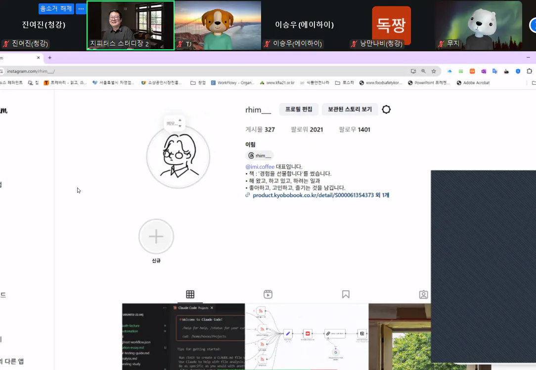 1주차 토요일 오후 1시 특강을 사진을 찍어 놨어야 했는데 못찍어 대체 사진 올려요 ㅠㅠ