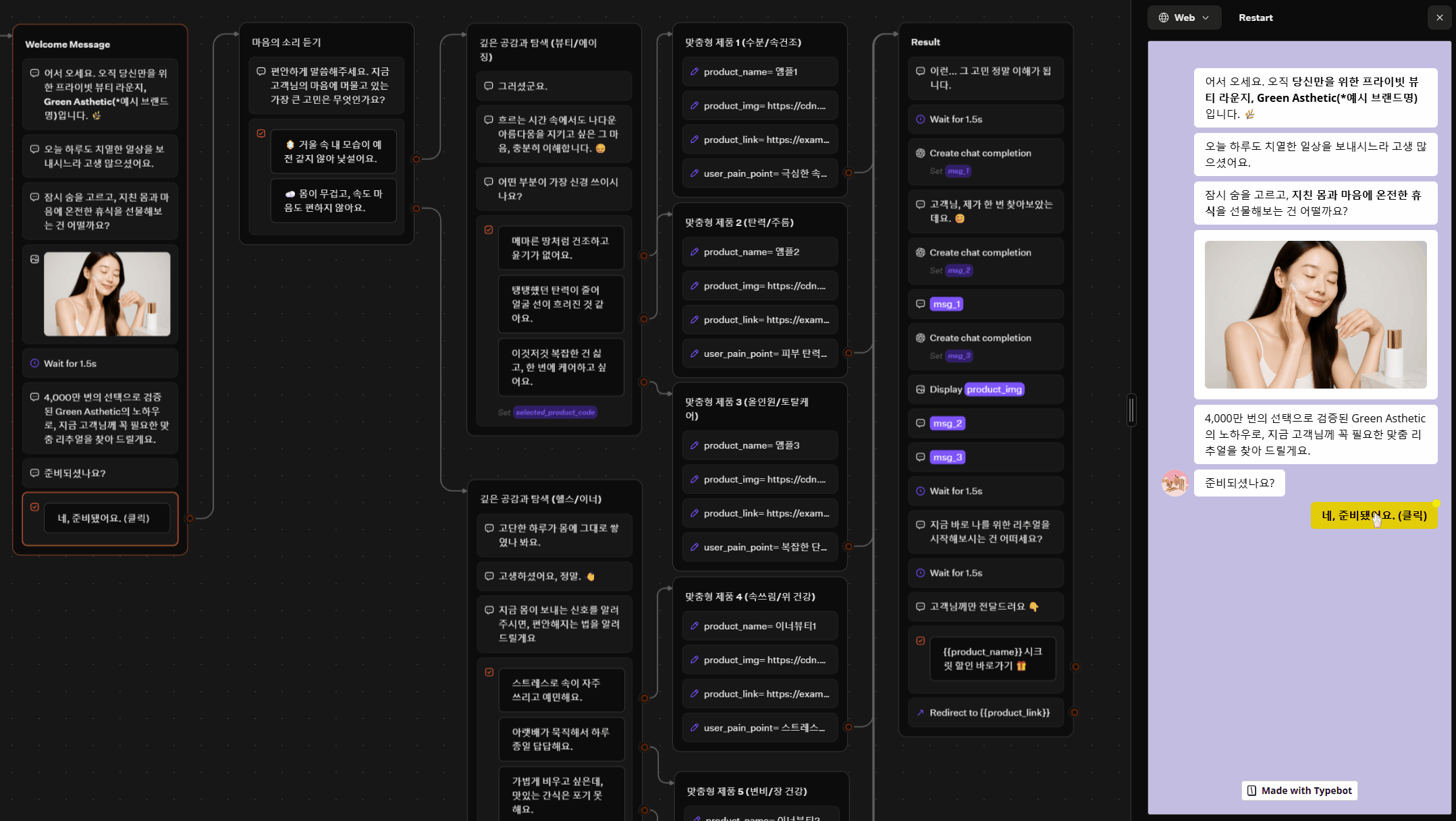 질문: 'Green Asthetic(*예시 브랜드명)' 이라는 브랜드의 앰플&이너뷰티 제품들을 판매하기 위한 프롬프트를 짜 줄래? 'typebot' 설문을 만들기 위한 제미나이 프롬프트야.