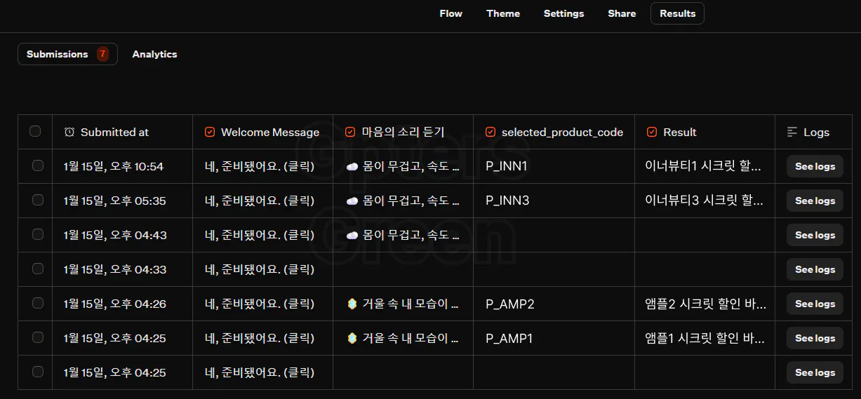 6️⃣ Result 탭에서 설문 결과 DB 조회하기