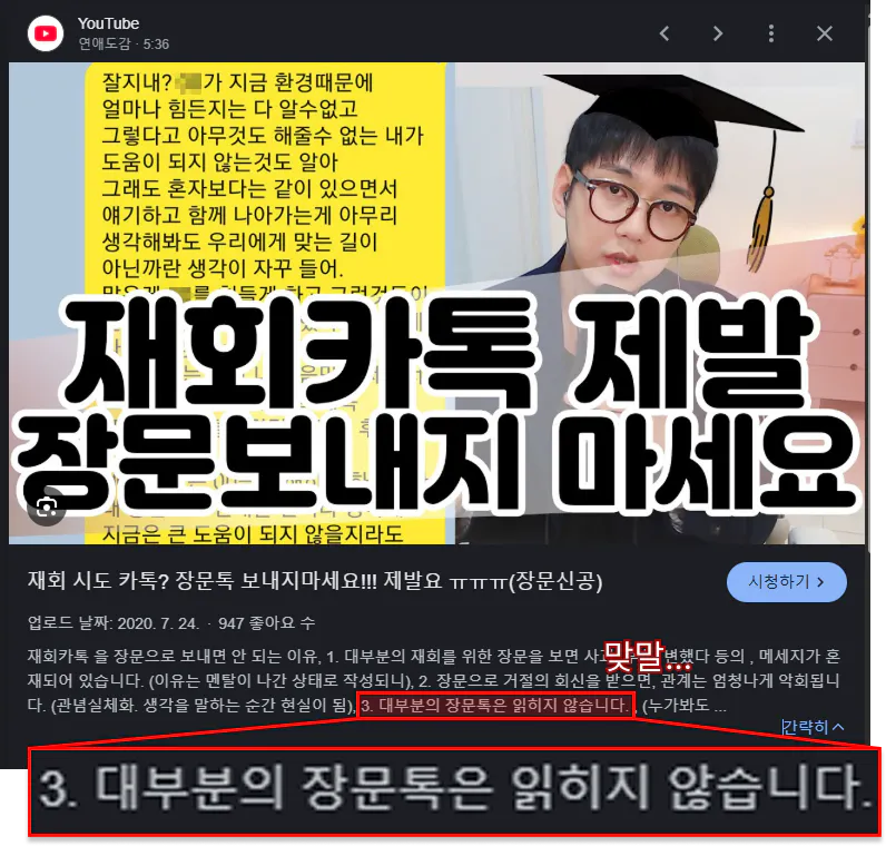 이대로 두면 이 메시지가 뜨자마자 사람들이 다 이탈하게 생겼더라구요. (여담이지만, 혹시 재회를 원하시는 분은 이미지 출처인 이 유튜브를 참고하시기 바랍니다...)