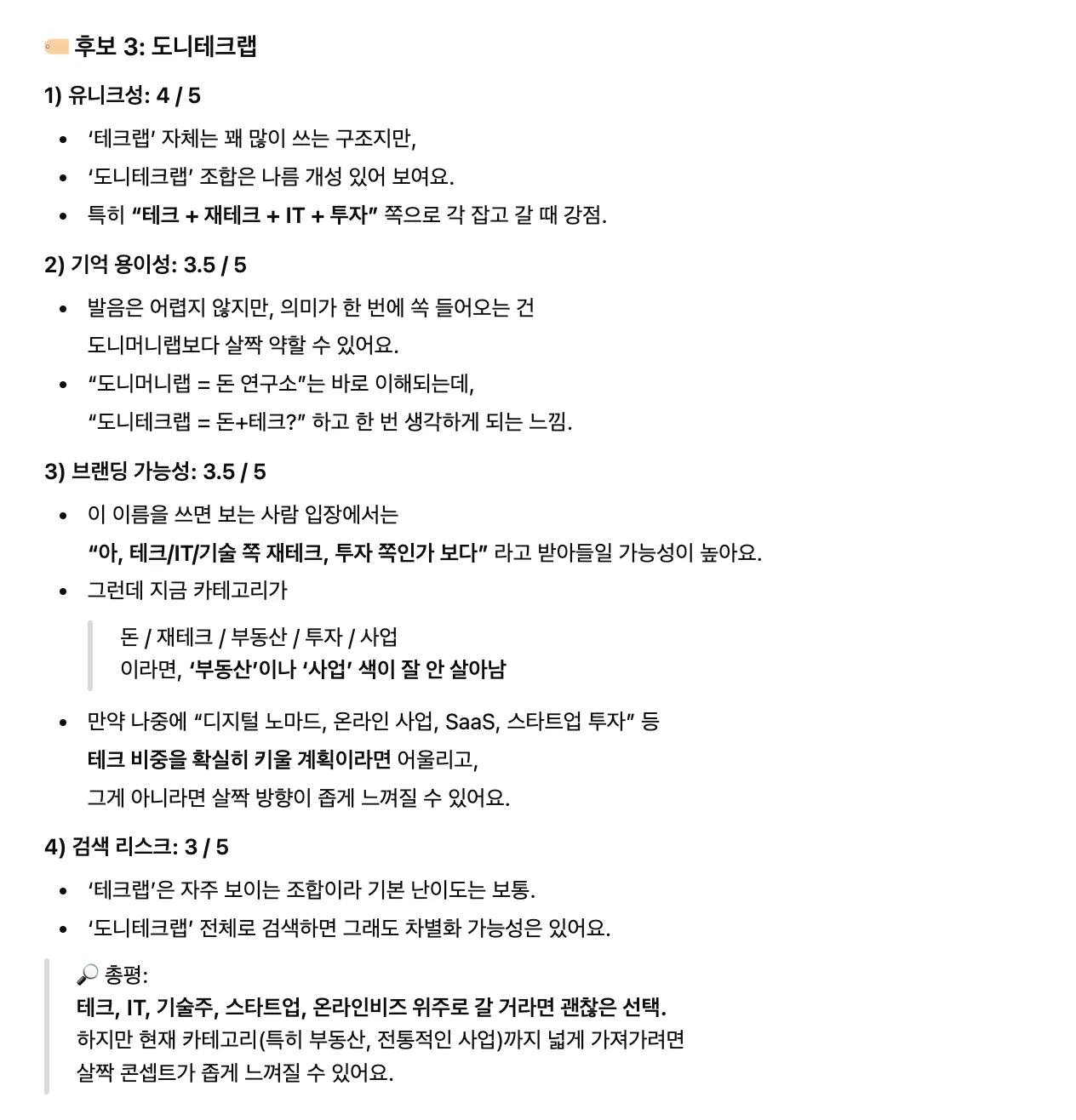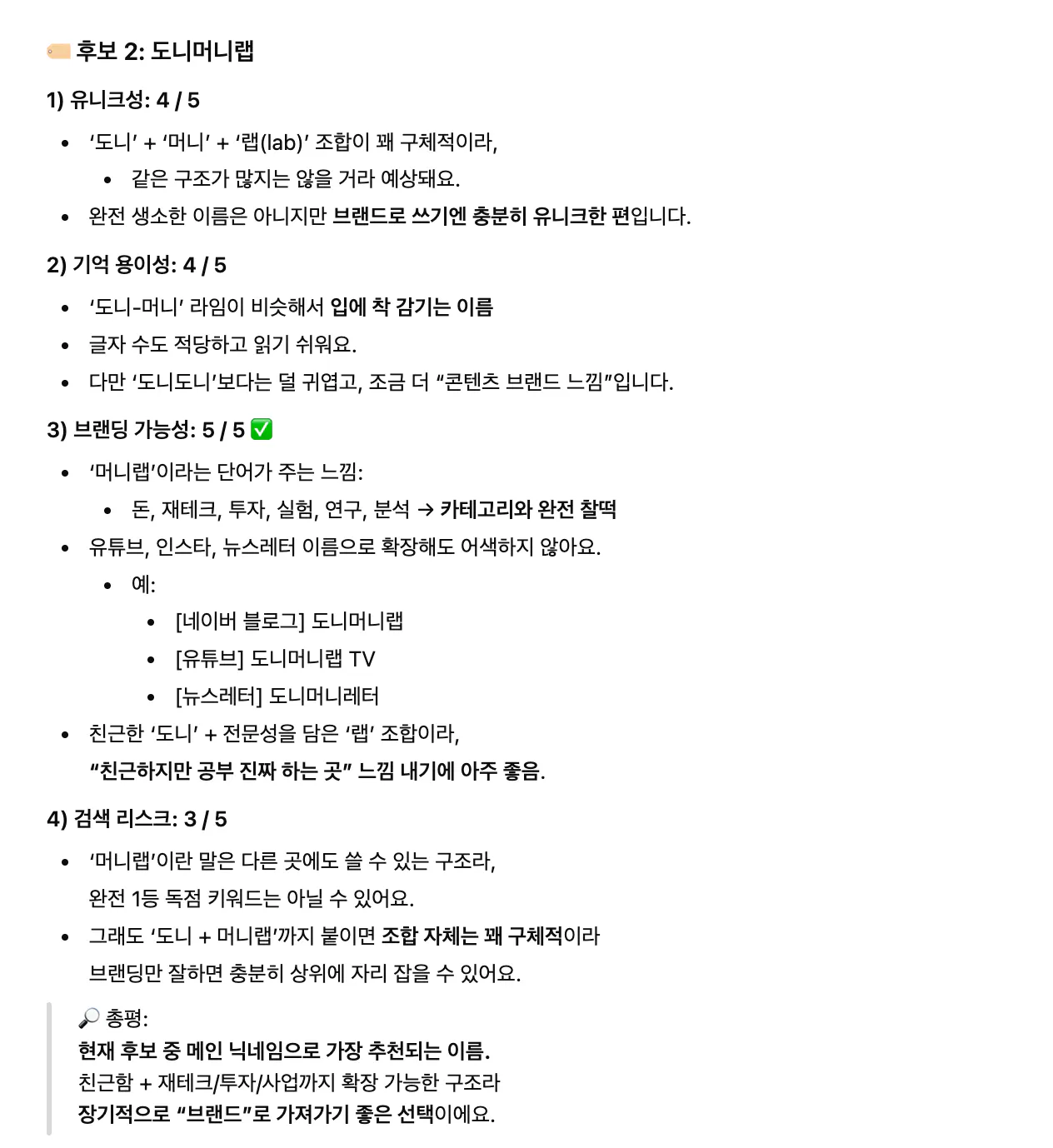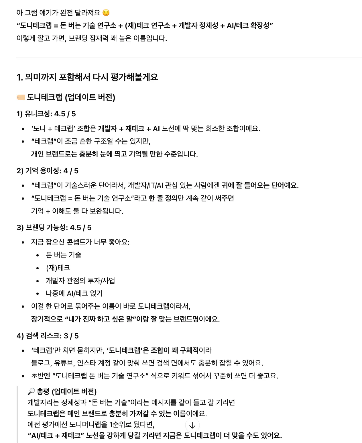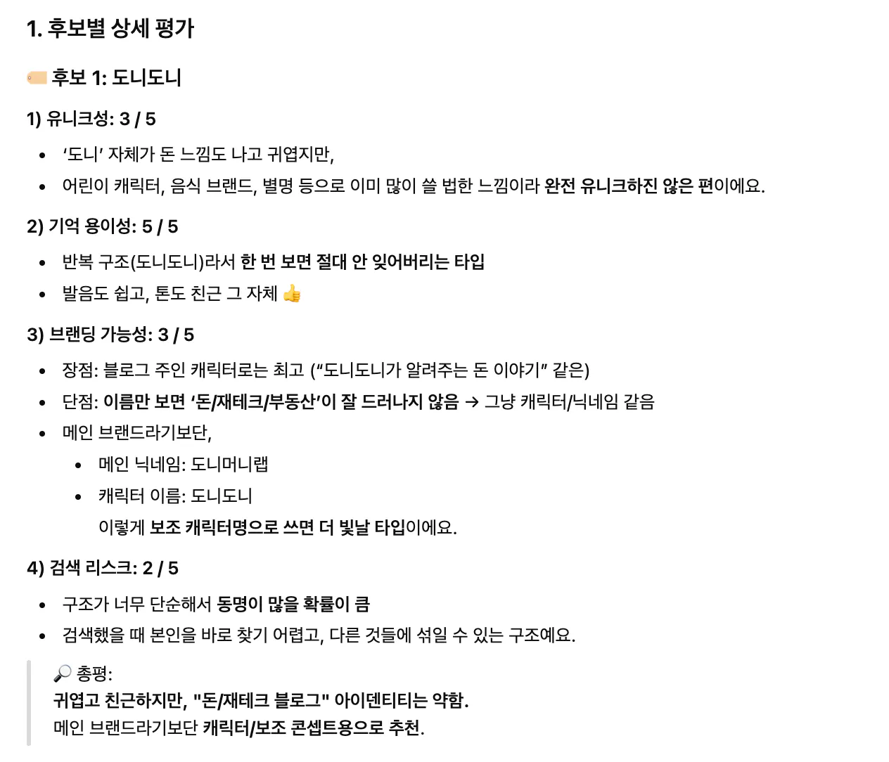 "닉네임 후보들 평가해줘" 라고 기본 시작 질문에서 골라봤구요
