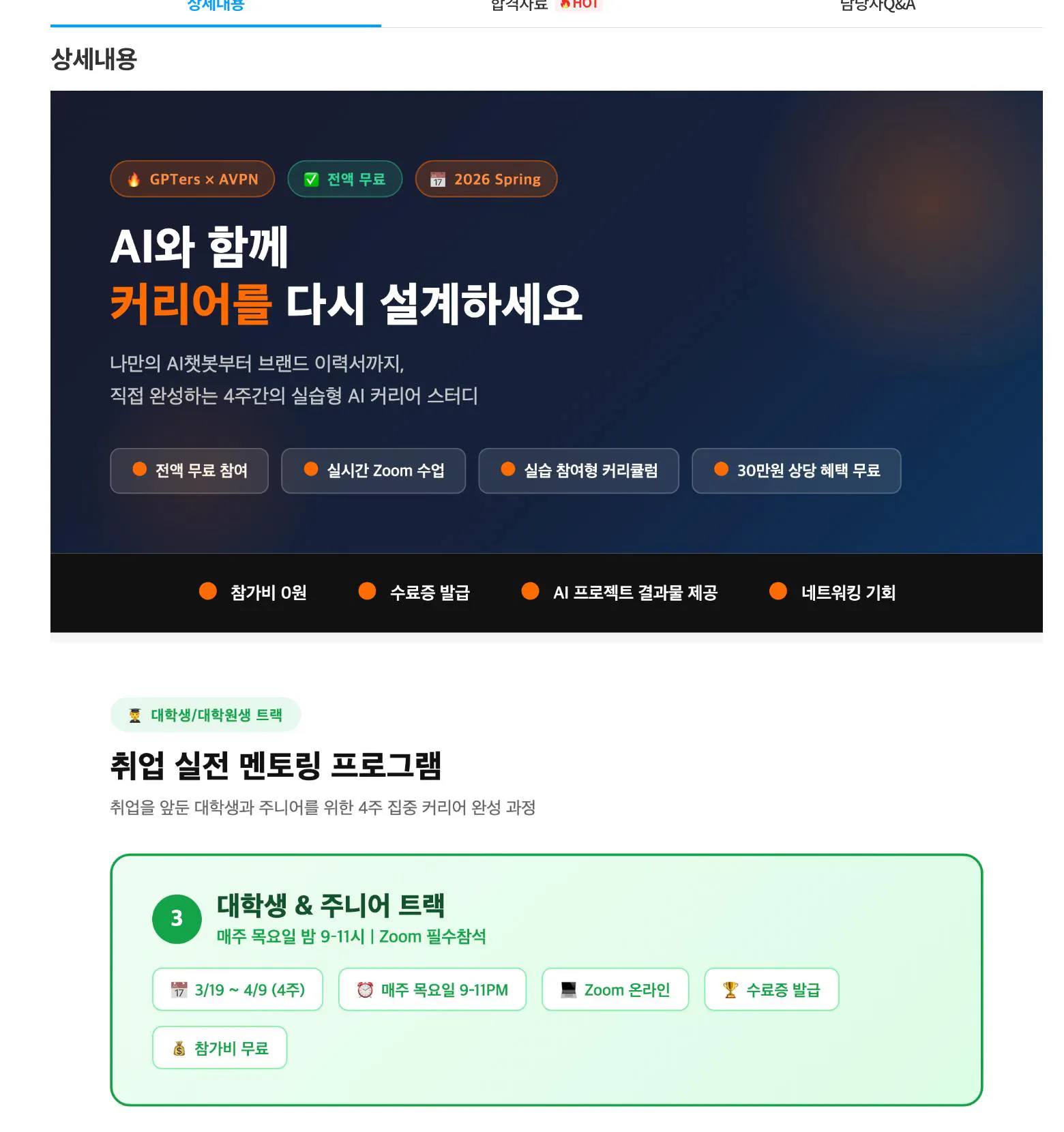 AI를 활용해 이력서·포트폴리오를 직접 만들어보는 4주 과정으로, 취업 준비 중인 분들에게 특히 추천합니다.
