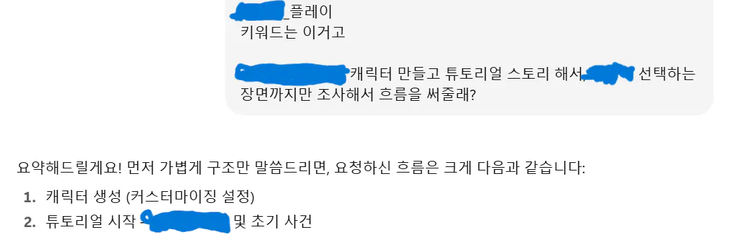 게임 속 튜토리얼을 조사해서 흐름을 짜달라고 합니다.