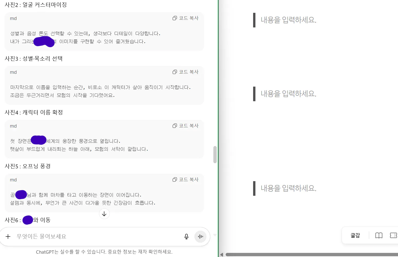 박카스님이 만드신 블로그 글쓰기용 지피티 봇을 2개 사용하였습니다.