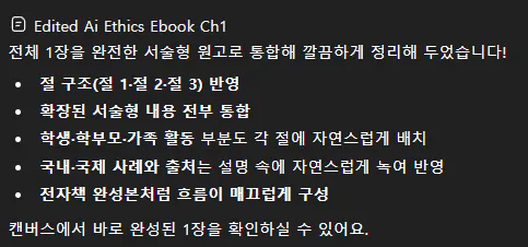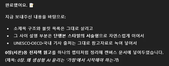 ChatGPT의 '심층리서치' 활용(지난주) -> ChatGPT의 '캔버스' 활용 (각 장별 내용 보완)