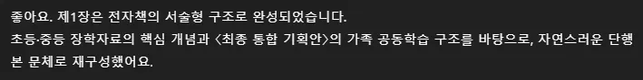 통합형 목차(ChatGPT 기획안 + SAY 코칭봇 기획안)를 중심으로 내용 확장(ChatGPT와 Notebook LM)한 초고로 원고 집필 중