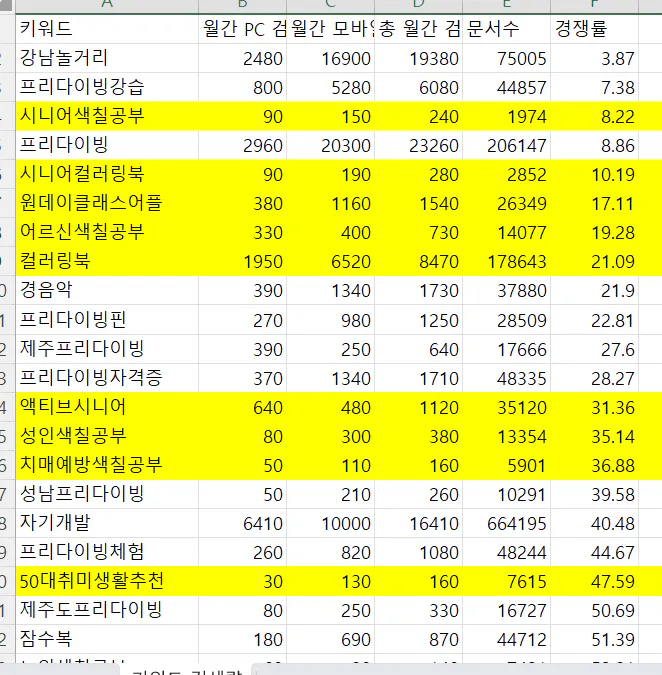 1.스터디장님께서 제공해주신 '네이버 키워드 검색 도우미' 프로그램 활용