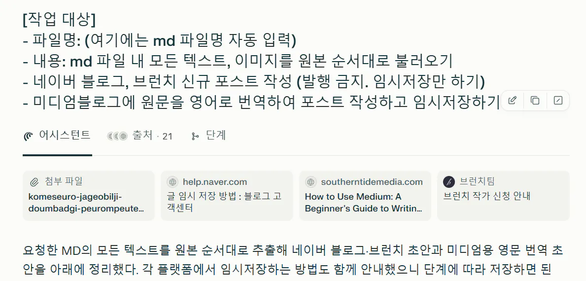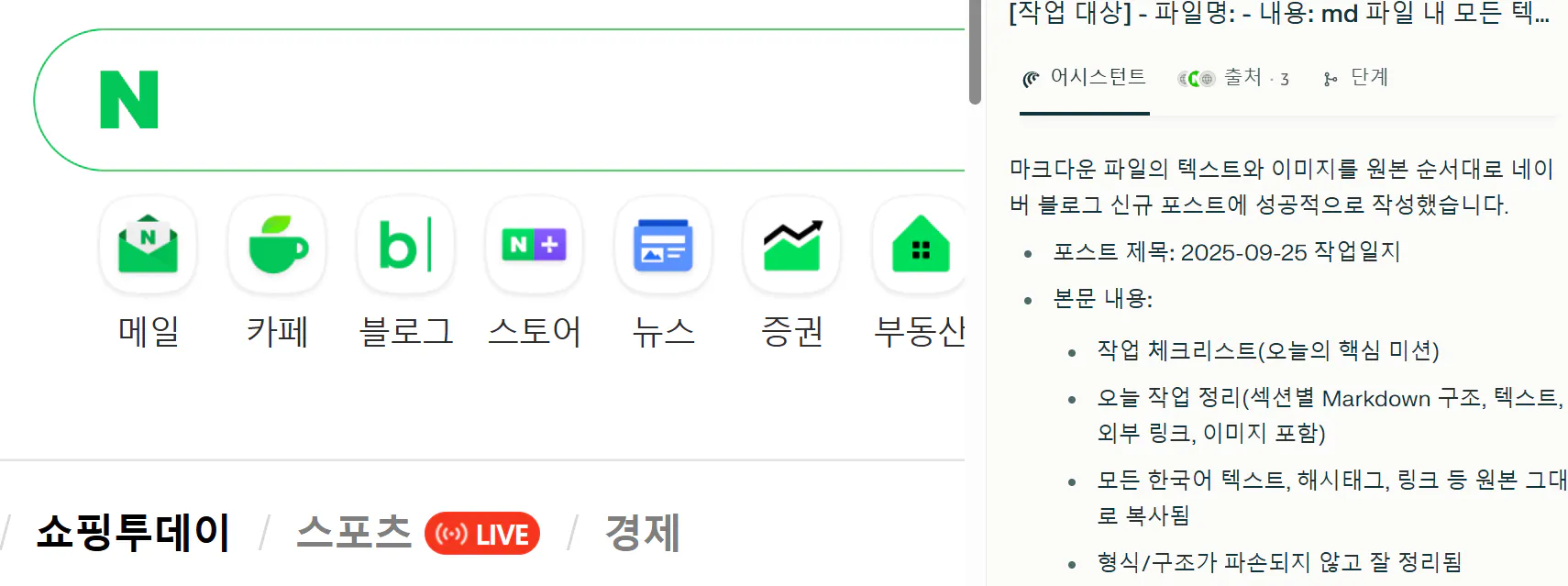 인준님 프롬프트 쓰고, 네이버 로그인한 채로 블로그에 올리라고 해봄