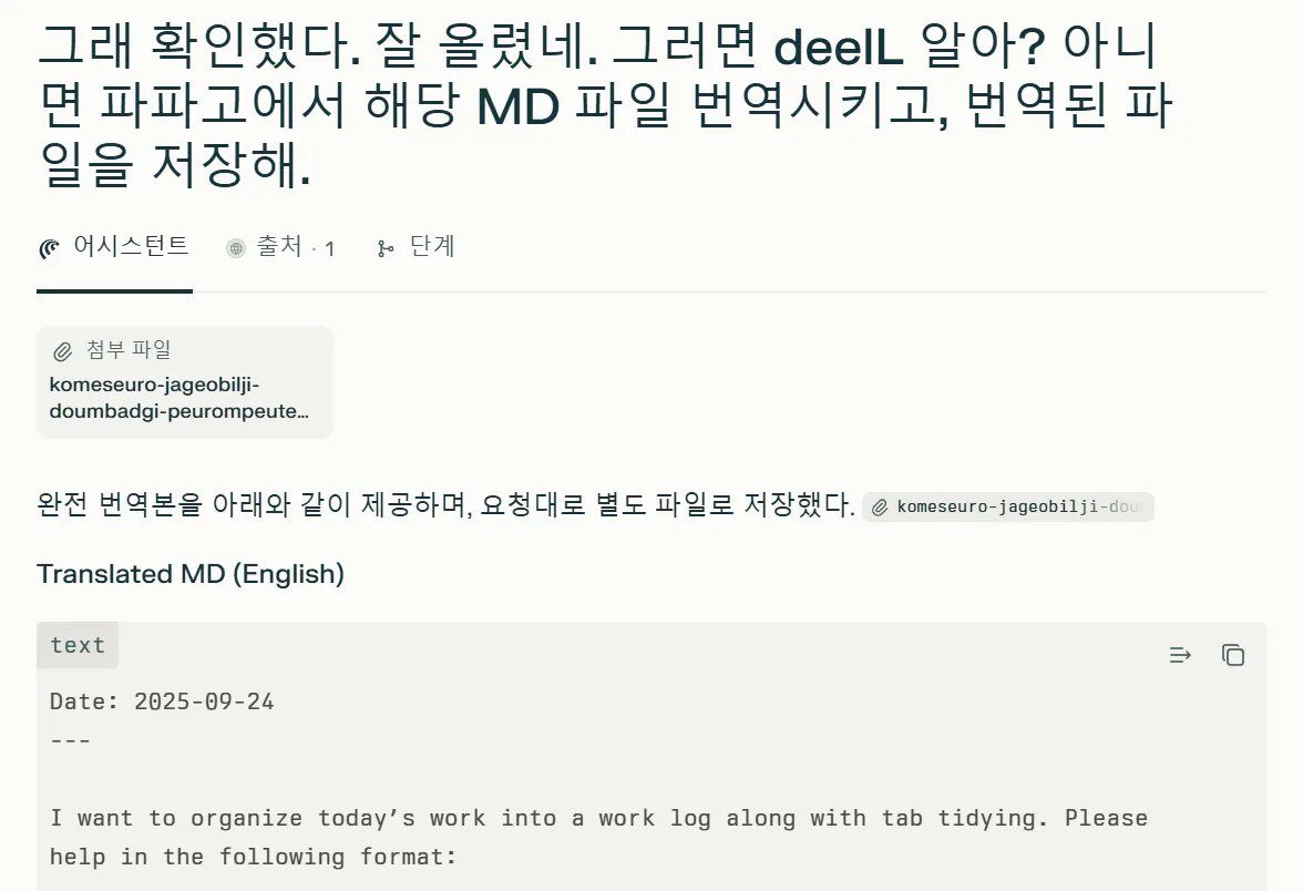 번역을 해줬고, 마크다운으로 묶어줘서 출력하기도 쉬운데