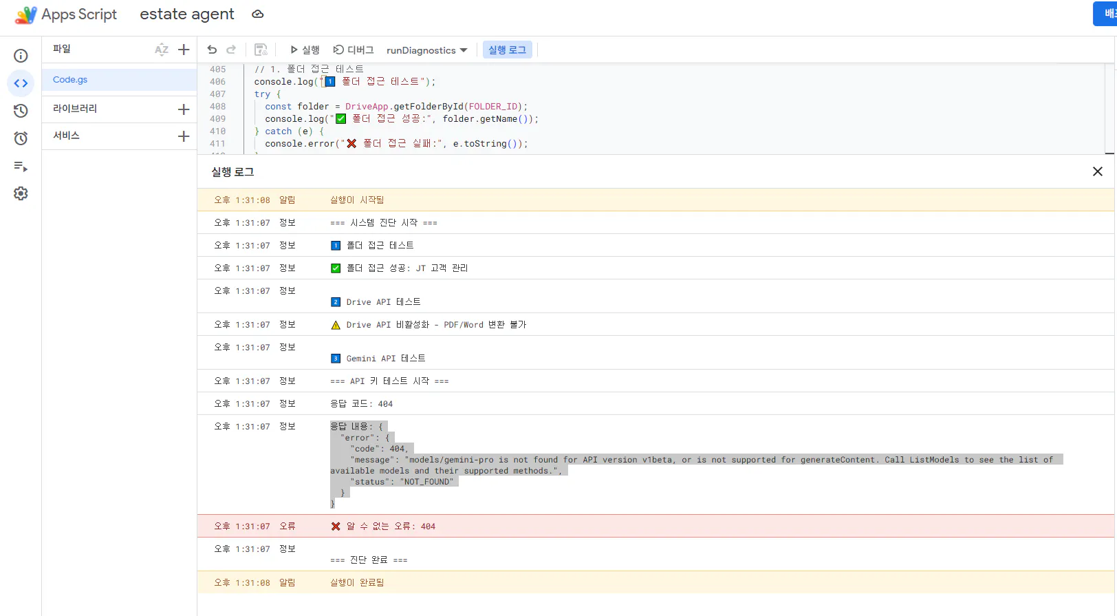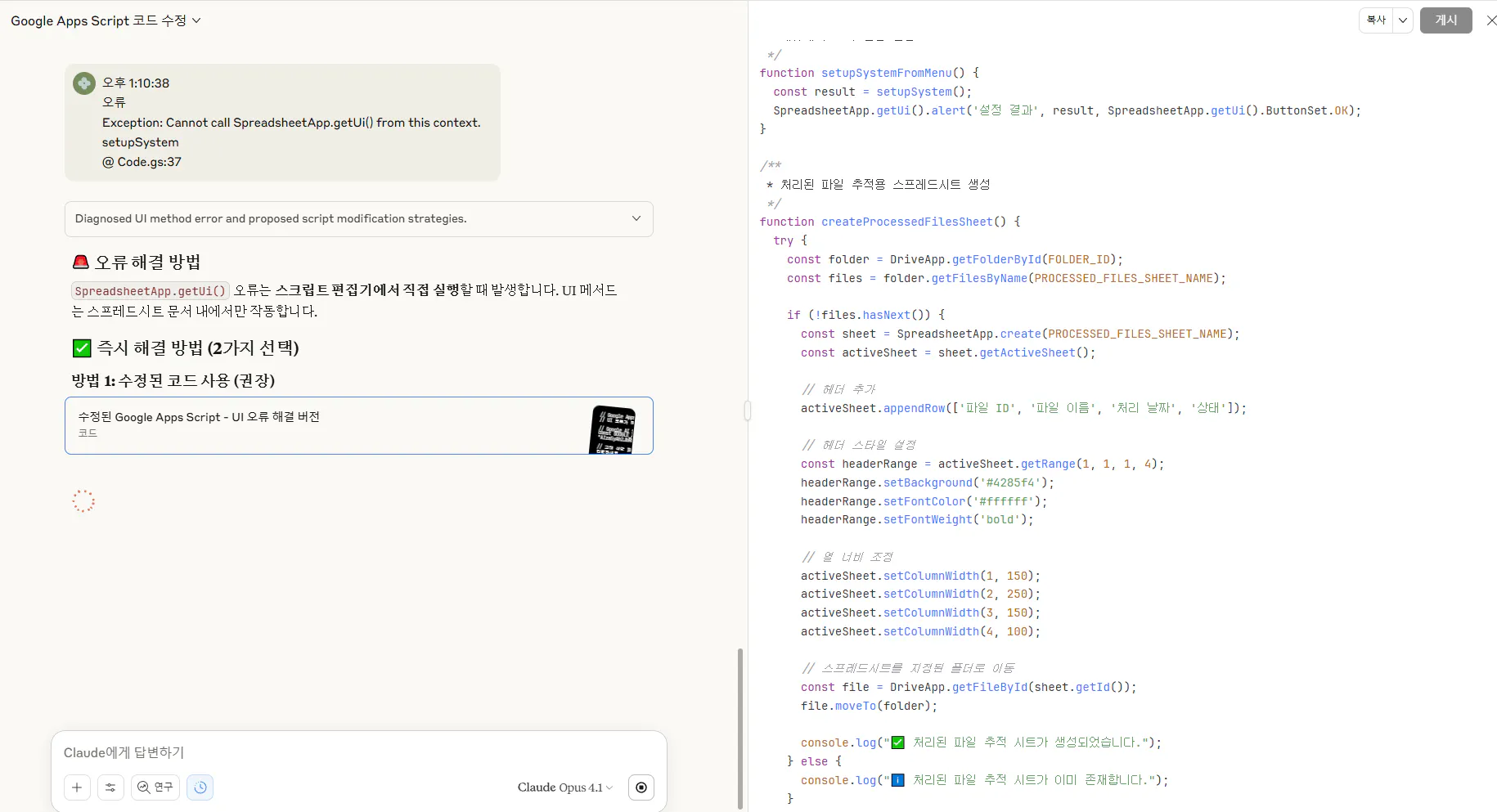 그렇다고 합니다. 클로드가 새로 준 스크립트를 입력합니다.