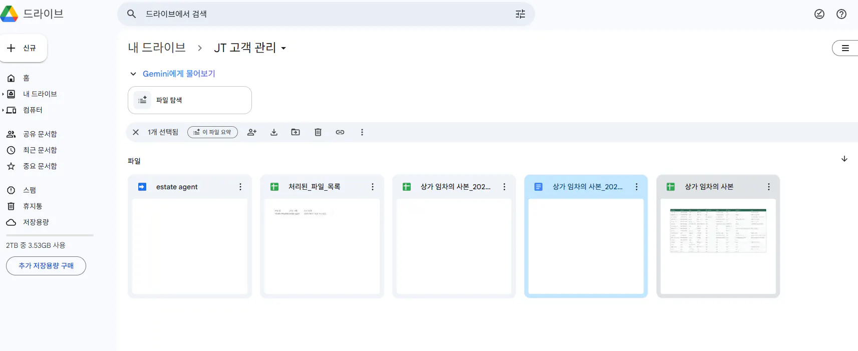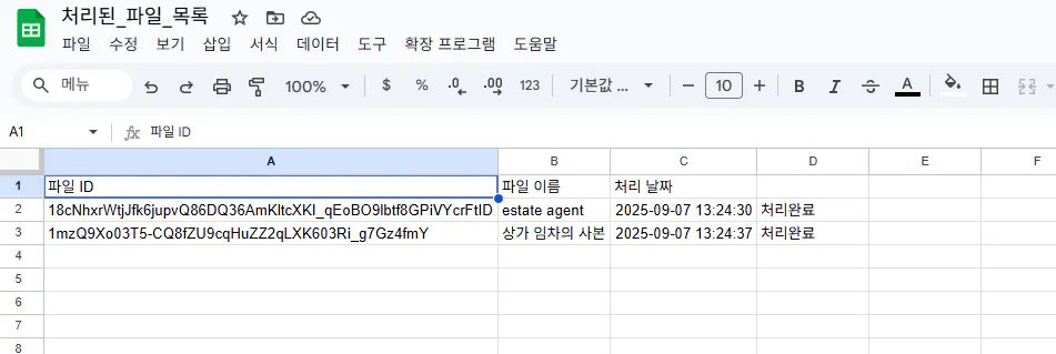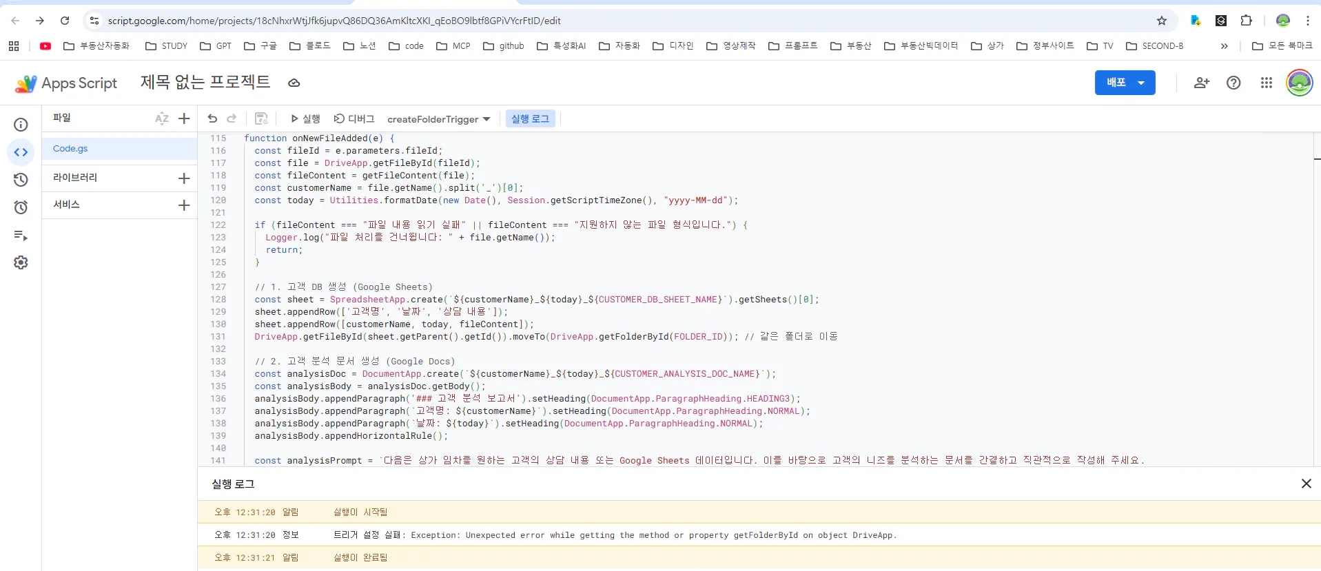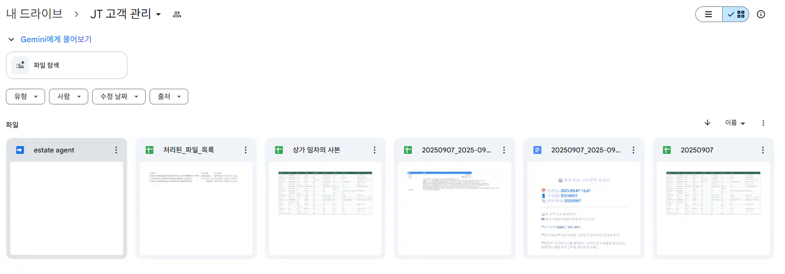 1. 해당 폴더에 상가 임차를 원하는 고객들의 상담내용 또는 google sheets 파일을 업로드하면 동작되는 트리거 필요