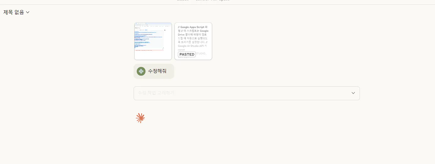 클로드에게 가서 아무것도 없다고 말합니다. 수정해 줍니다. 수정해준걸 입력합니다.