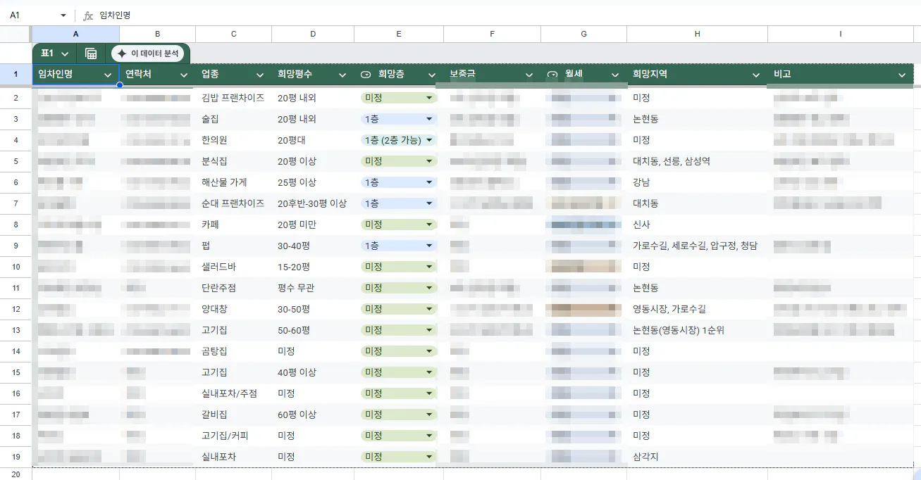 몇분을 분석해서 보고 합니다. 분석한 결과를 바탕으로 데이터베이스화 해서 구글시트에 올려달라고 요청합니다.