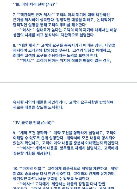 4. 이를 바탕으로 10년차 **real estate agent 가 되어서 세일즈 포인트를 10개 이상 제안**