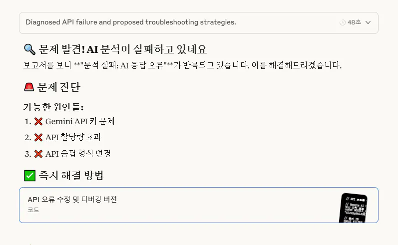 처리는 했는데 처리 했다는 입력만 있습니다. 이 결과를 클로드에게 다시 물어 봅니다.