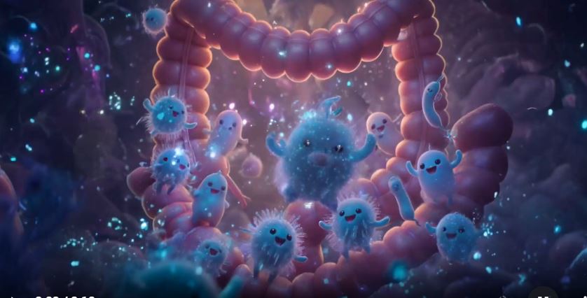 📌 광고 포인트: 장 속에서 미생물들이 파티하는 애니메이션 광고