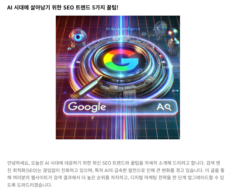 'AI์๋์ ์ด์๋จ๊ธฐ ์ํ SEOํธ๋ ๋ 5๊ฐ์ง ๊ฟํ! ์ด๋ ์ ๋ชฉ์ผ๋ก
