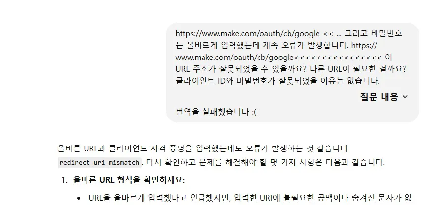 위와 같은 오류 관련 대화를 수십번 반복해서 질문하고 수 많은 시간을 투자했는데도