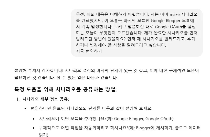 결국 아주 간단한 블로그 메이크 자동화 시나리오도 현 시점에서