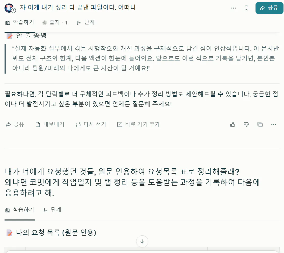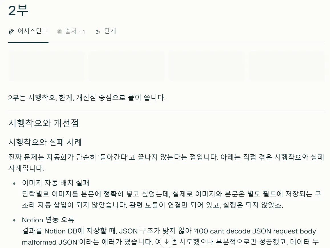 - Notion ๋ฑ ๊ฒฐ๊ณผ ์ ์ฅ ์๋ํ - ๊ธฐ์กด ์์ ํ์คํ ๋ฆฌ/์ํ ๋ณ๋ ์ ๋ฆฌ