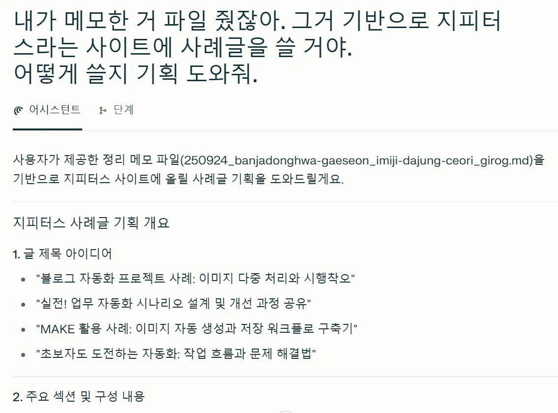 ์๋ ํ์ธ์~~ make๋ก ๋ธ๋ก๊ทธ ๊ธ ์์ฑ ๋ฐ์๋ํ ์๋๋ฆฌ์ค์ ์์ ๊ฐ์ ์ฌ์ ์ค ํ๋๋ฅผ ์ฑ๊ณตํด์