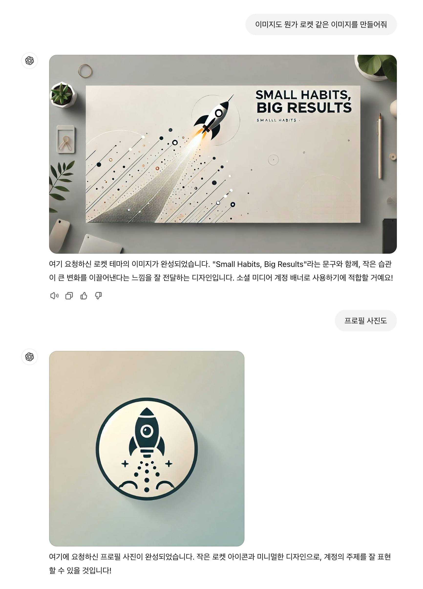 생각보다 괜찮은 결과가 나와 조금만 다듬으면 그럴듯하게 보일 것 같았습니다. 다음으로, 프로필 내용을 정했으면 프로필 이미지와 커버이미지를 계정에 등록하게 되는데요, 제가 포토샵도 할 줄 모르다보니 이 부분도 gpt의 도움을 받았습니다.