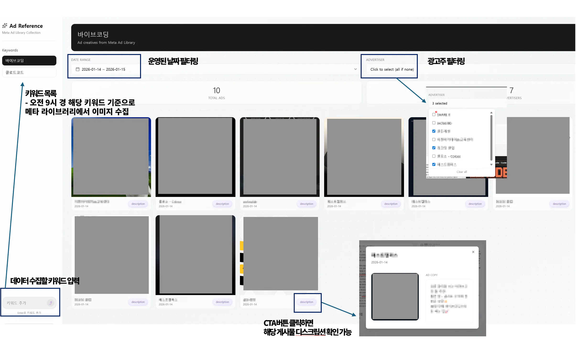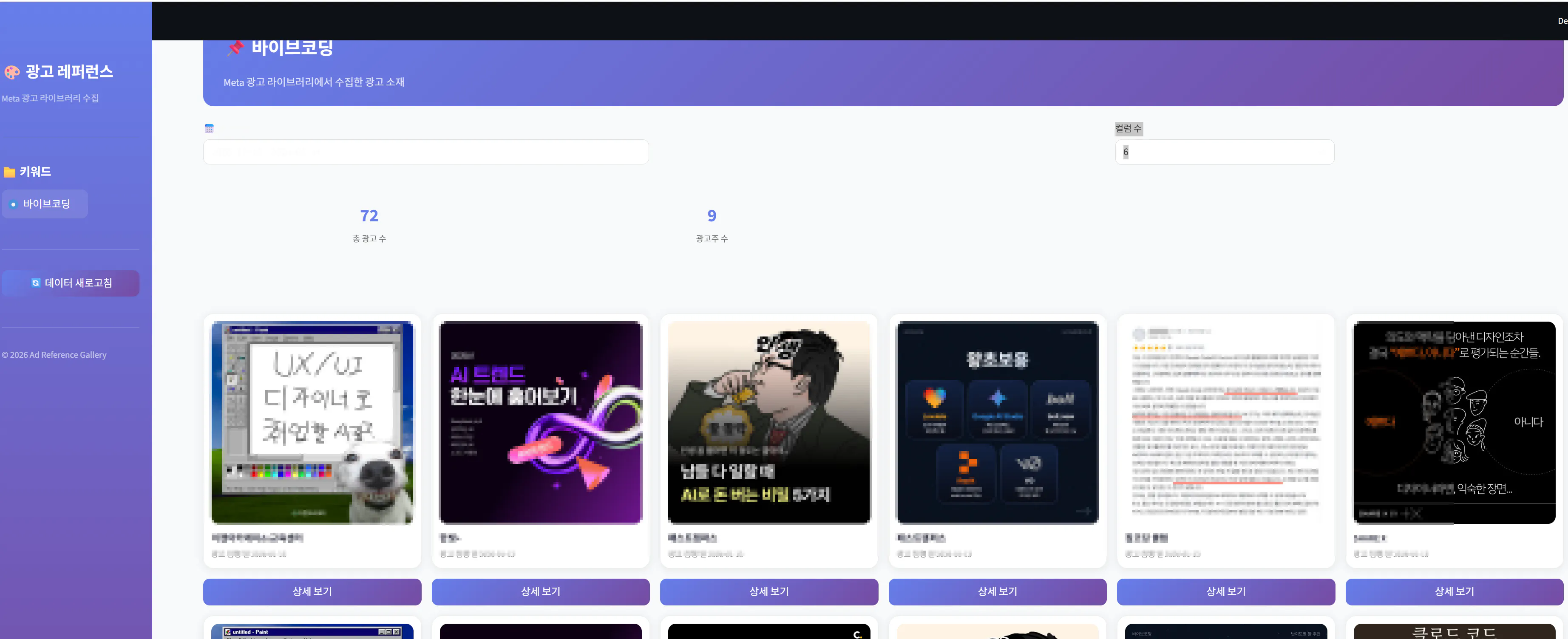이를 통해 관심 주제의 광고 소재를 지속적으로 모아볼 수 있는 구조로 확장할 계획입니다.