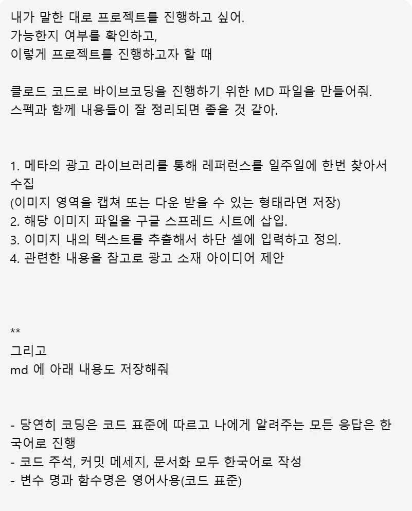 일단 저는 위에서 소개한 이 프로젝트의 목적을 gpt 에게 넣고 MD 파일을 만들어 달라고 했어요.