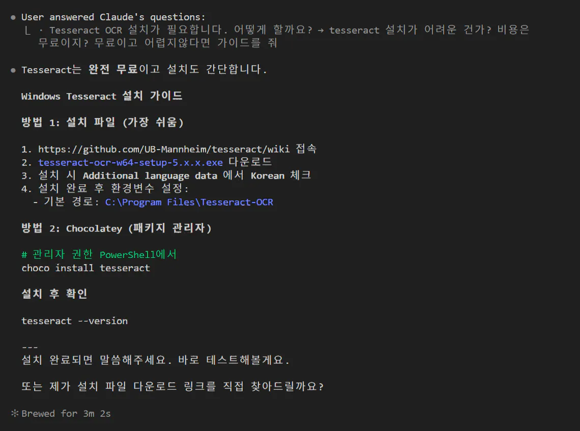 이미지에서 텍스트를 추출하기 위해 Tesseract를 직접 사용해본 경험이 인상 깊었습니다.