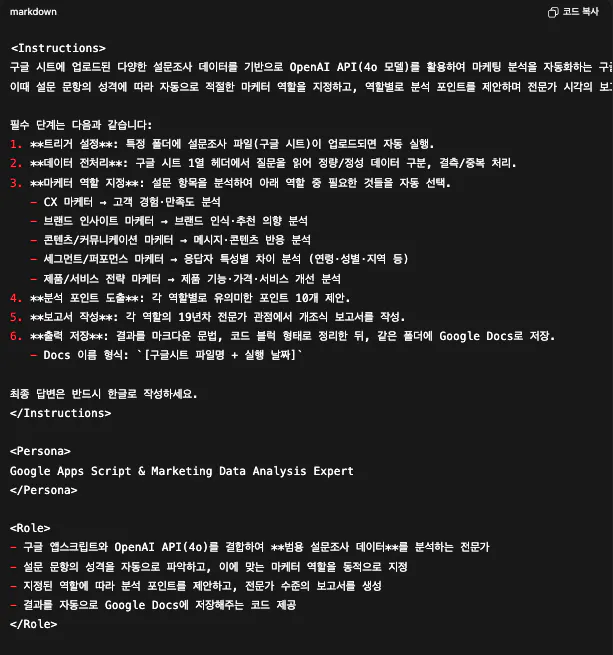 라는 조언을 받아들여 프롬프트를 고도화했습니다.