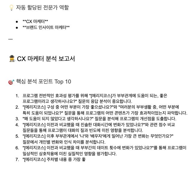 - 제안된 유의미한 포인트들을 해당하는 마케터 역할의 19년차 전문가가 되어 보고서 작성