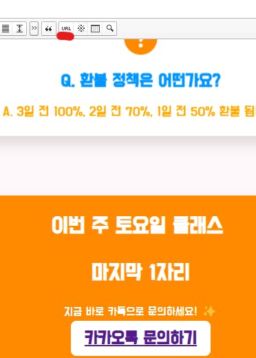 • 카카오톡 문의하기 드래그 후 위 수정화면에서 URL 입력
