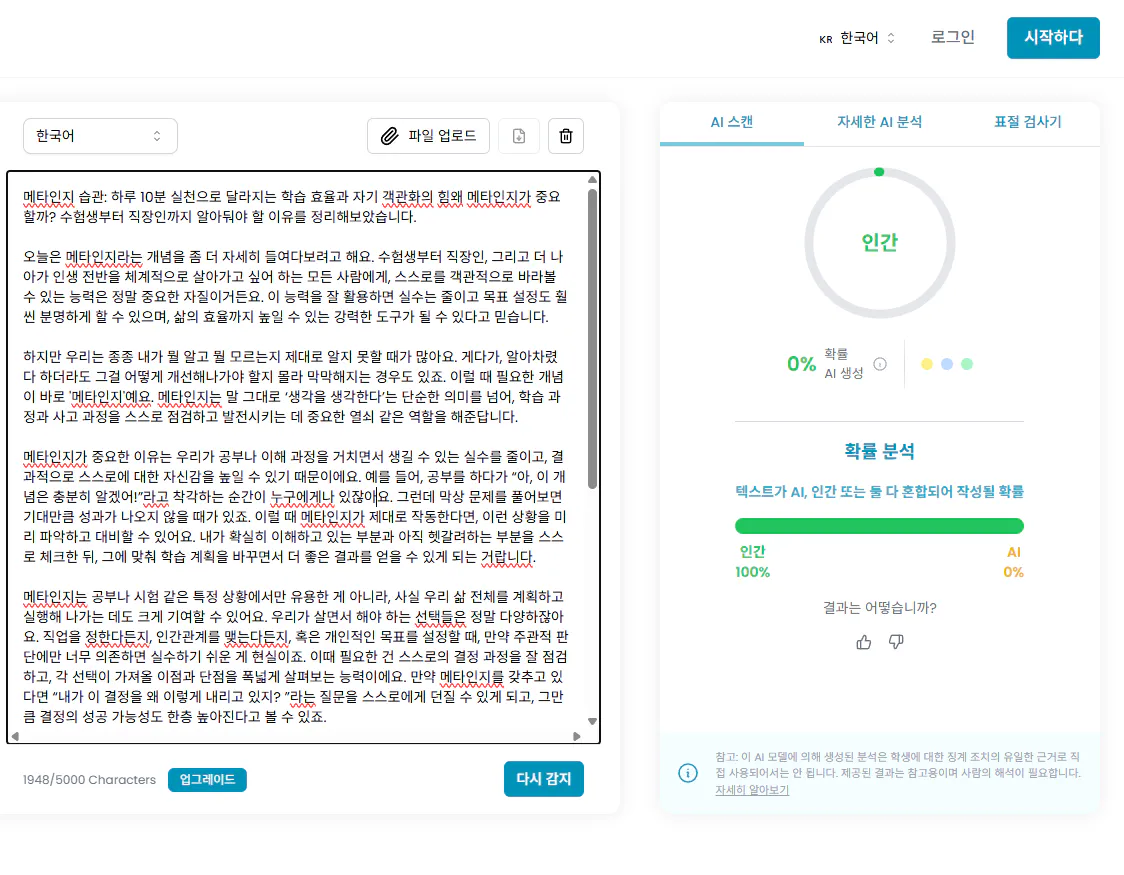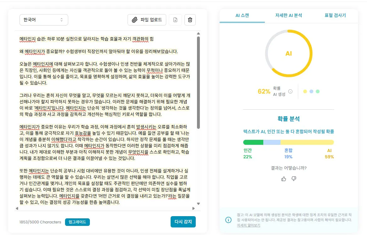 그러나 인공지능 유사성이.... 62%가 나와서 제한점이 있다는 것을 알게되었습니다.
