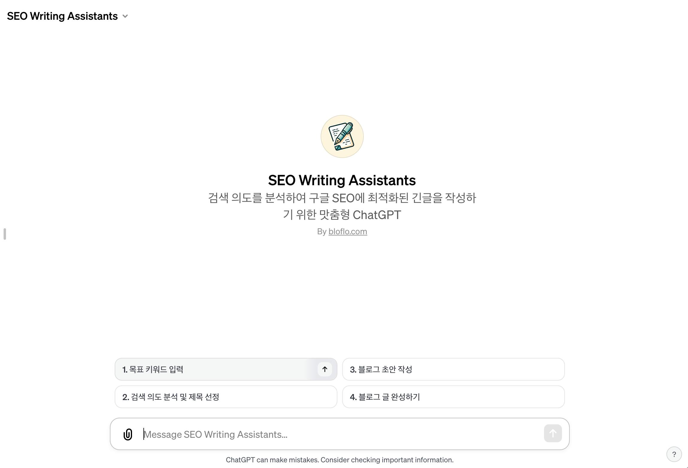 Plus사용 못하시는 분도 있으시지만 기존 프롬프트보다 추후 더 편하게 사용 하실 수 있도록 gpts인 SEO Writing Assistants 로 사례를 공유 하도록 하겠습니다. Plus 사용이 어려우신 분은 예전에 공유 했던 검색의도 기반의 콘텐츠 추천 받기 내용을 확인해보시면 됩니다.